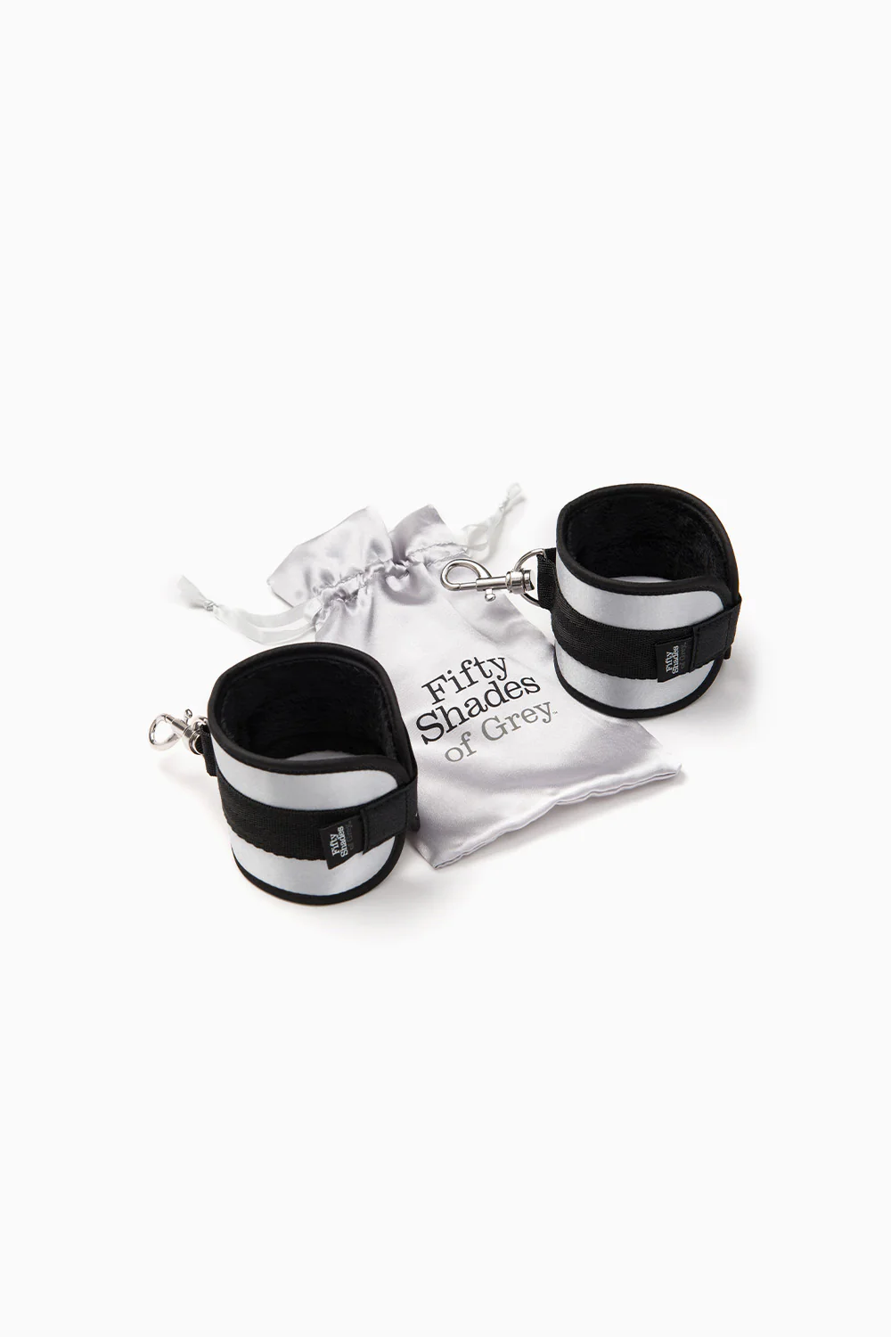 Relinquish control as you submit to your partner’s desires with the Fifty Shades of Grey Totally His Soft Handcuffs. These handcuffs are perfect for restraint play, designed to provide strong and secure restraint while ensuring comfort. The soft velvet lining against your skin, paired with a satin exterior, makes for a luxurious and satisfying experience.